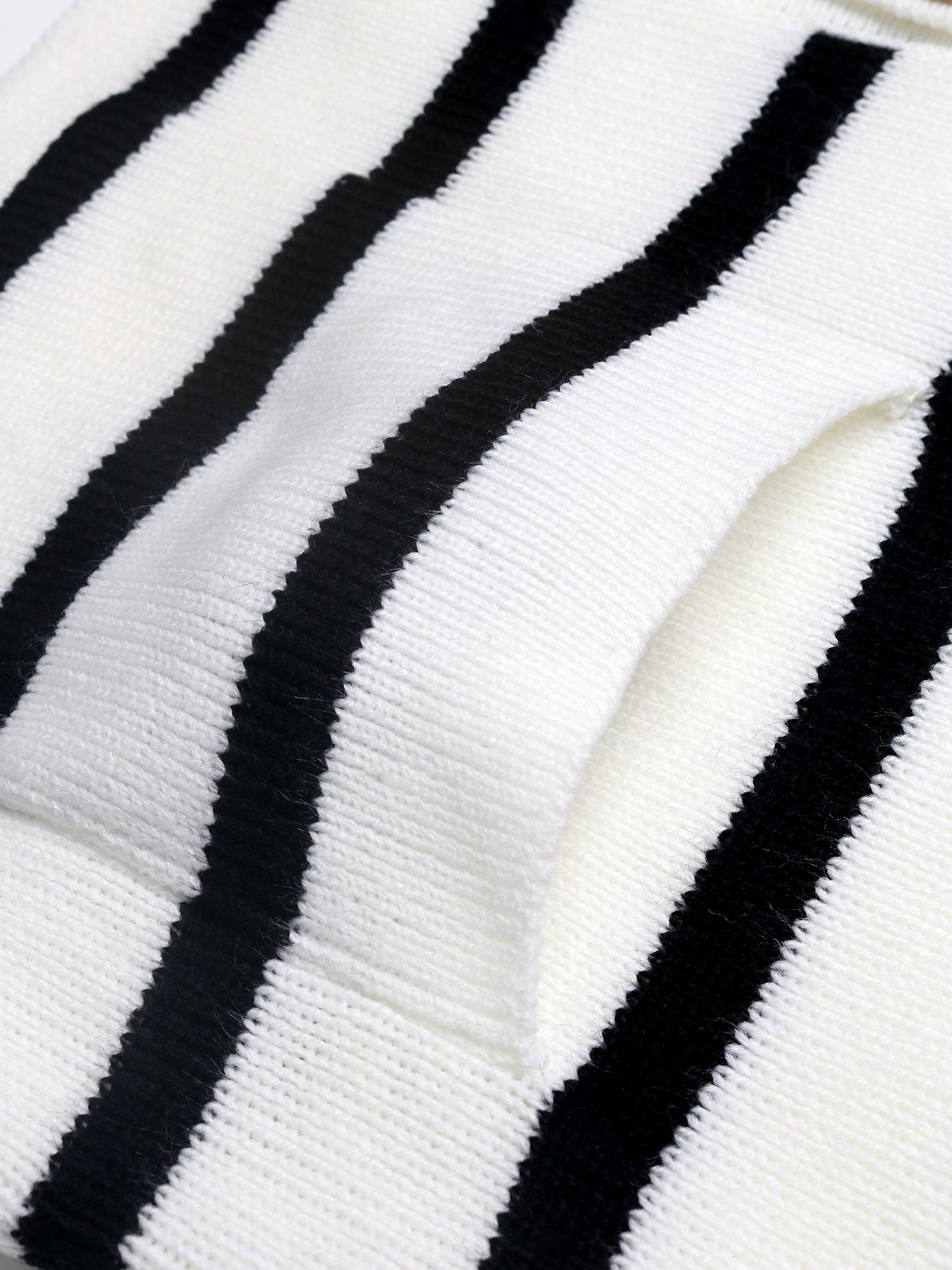 Op zoek naar dat perfecte vest dat stijl en comfort combineert? Dit zwart-wit gestreepte knitted cardigan met gouden knoopjes is een echte eyecatcher in je garderobe. 🤍🖤